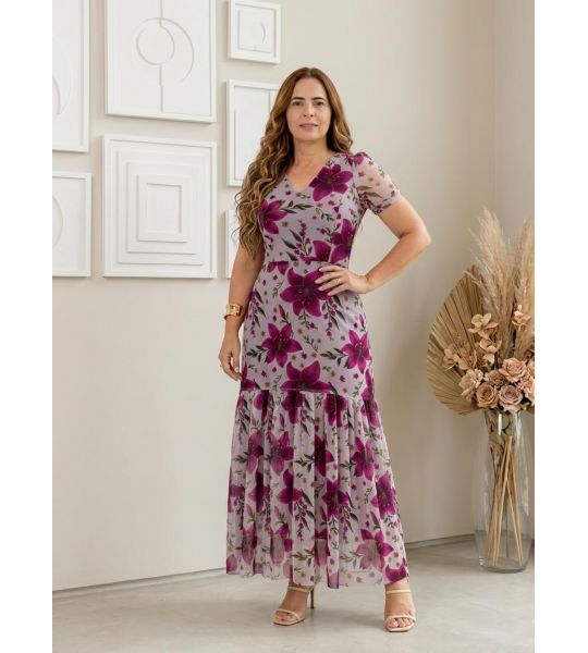 PLUS SIZE - VESTIDO REBECA EM TULE ESTAMPADO COM FORRO
